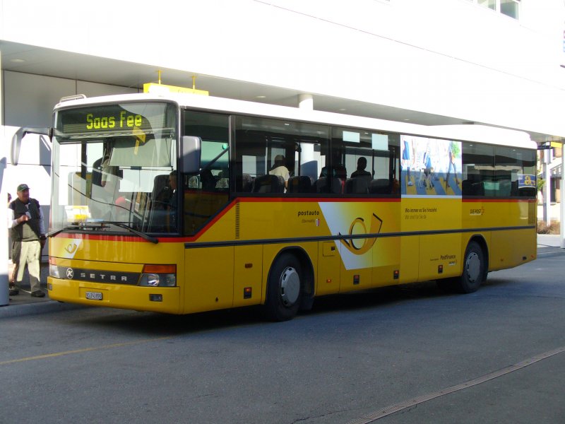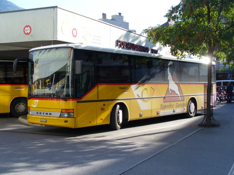 Post - Setra Post-Bus mit Werbung VS 243890 bei der Postautohaltestelle in Visp am 20.09.2007