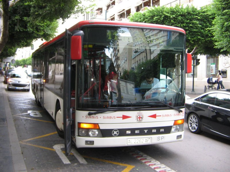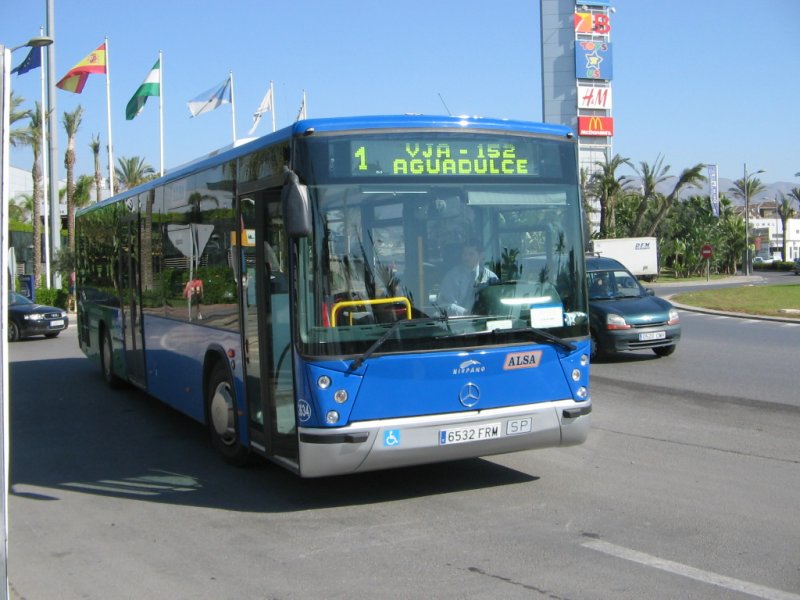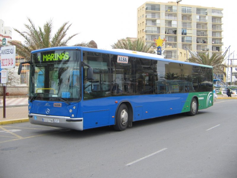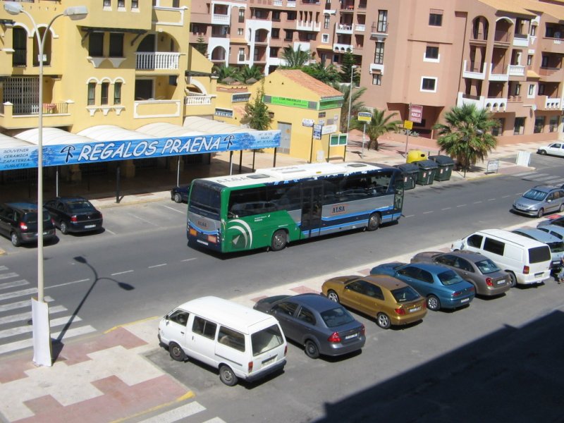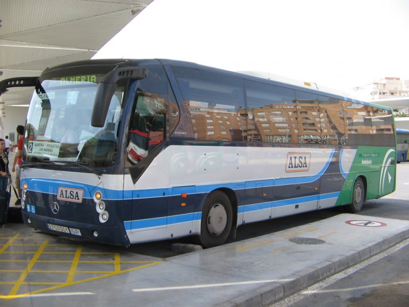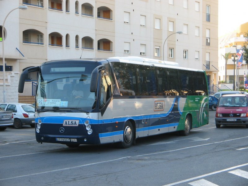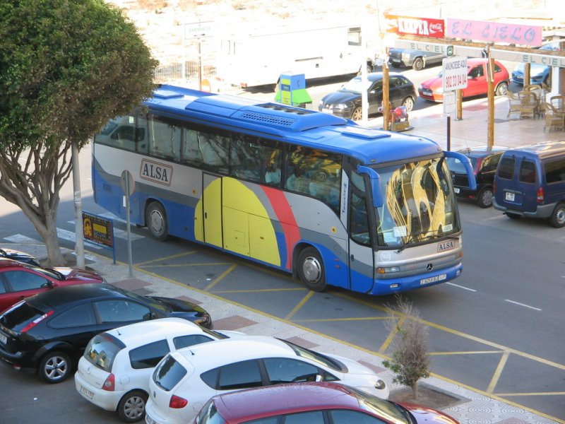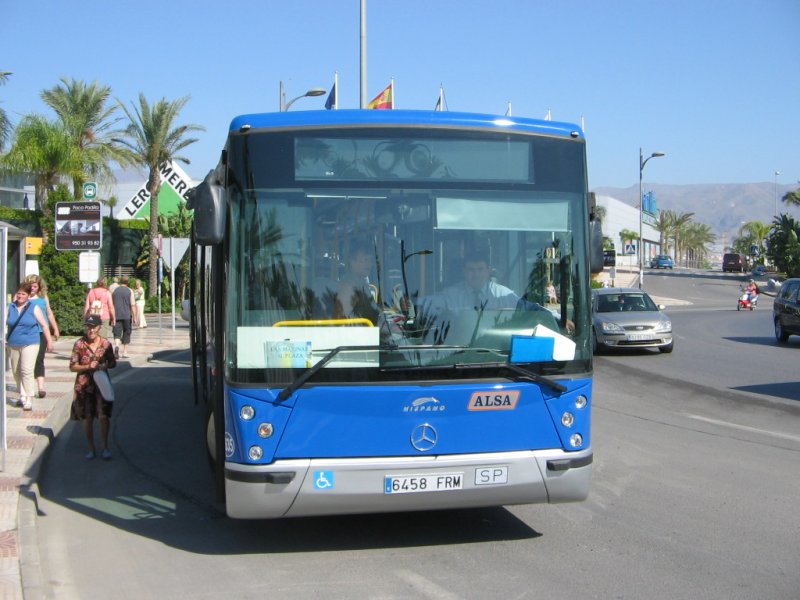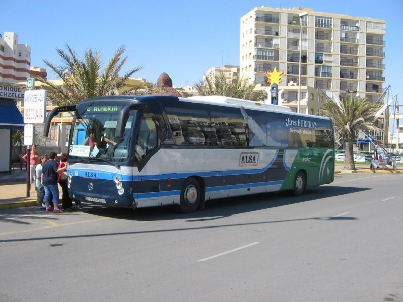 Spanien/Roquetas de Mar/MB-Linienbus/01.10.07 um 9.03 Uhr vor dem Hotel Zoraida-Garden.