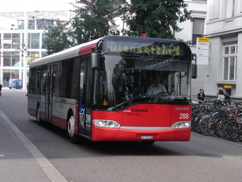 Stadtbus Winterthur. Dieser Bus hat eine Dienstfahrt vor sich. Aufgenommen am 10.10.2007