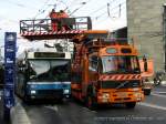 Der Gelenktrolley Nr.187 unterquert am 22. März 2007 den Turmwagen Nr. 10.