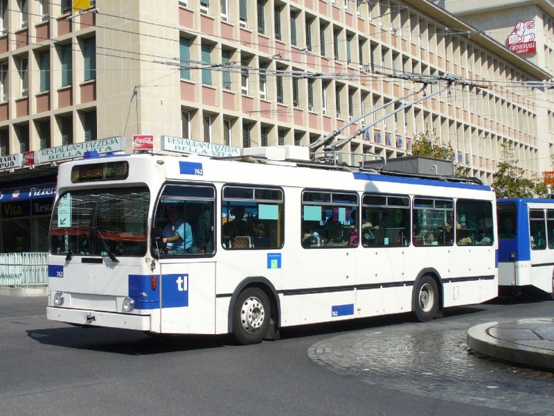 tl - NAW Trolleybus Nr.762 auf der Durchgangsstrasse vor dem SBB Bahnhof in Lausanne am 09.09.2007