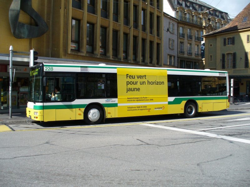 TN - MAN Bus 228 / NE 111228 mit Teilwerbung unterwegs in Neuchatel am 19.09.2007
