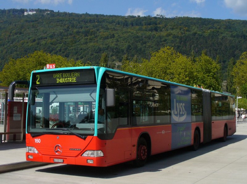 VB - Biel / Mercdedes Citaro Bus Nr.150 BE 572150 bei der Haltestelle Schiffländte eingeteilt auf der Linie 2 Gare Boujean Industrie am 10.09.2007