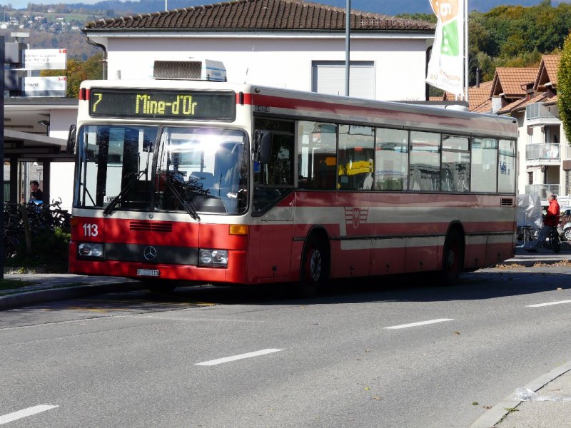 VB-Biel - Mercedes Bus 113 bei der Haltestelle vor dem Bahnhof in Brügg am 20.10.2007