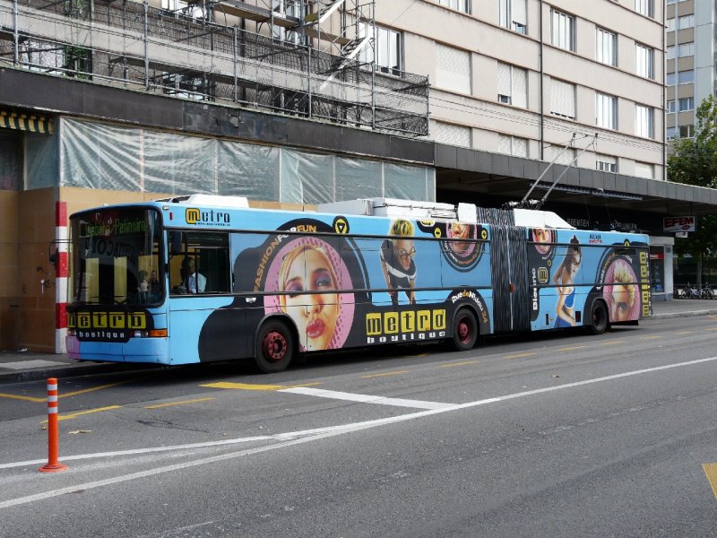 tl - NAW Trolleybus Nr.780 mit Werbung vor dem SBB Bahnhof in Lausanne am 09.09.2007