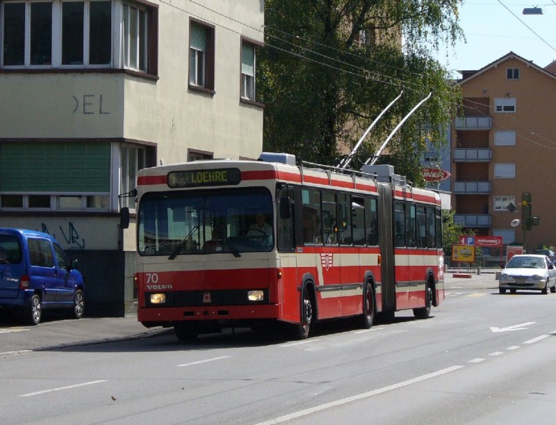 VB - Trolleybus Nr. 70 unterwegs in den Strassen von Nidau / Biel eingeteilt auf der Linie 4 nach LOEHRE am 12.09.2007