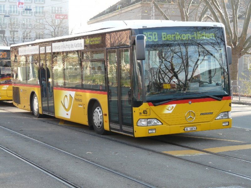 Postauto - Mercedes Citaro Nr.45 AG 18876 unterwegs auf der Linie 350 in Zürich am 29.11.2008