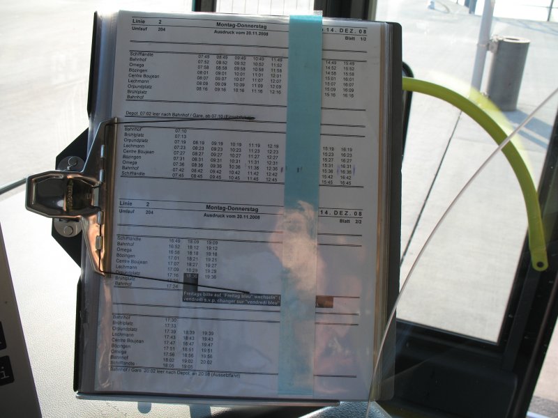 Trotz Bord Computer mit GPS brauchts den Papier Fahplan auch im 2009 ! Hier Line 2 Kurs 204