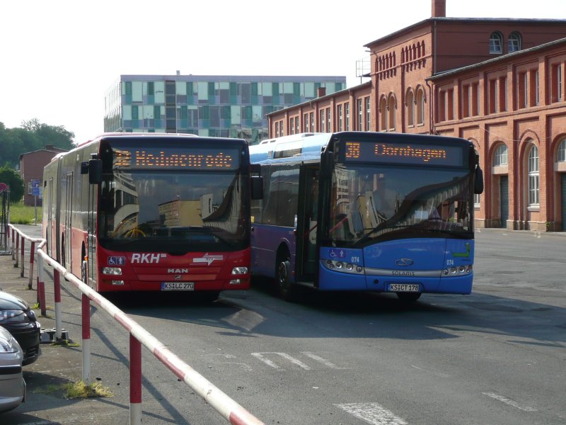 Bogestra Solaris Urbino 18,Linie 369 von Wanne Eickel Hbf. nach Bochum Ruhrpark,rechts Bogestra Neoplan Gelenkbus ,