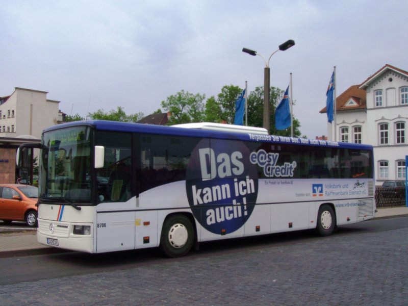 Bus Eisenach / Verkehrsgesellschaft Wartburgkreis mbH (VGW): Mercedes-Benz Integro der KVG Eisenach mit Easy-Credit-Vollwerbung, eingesetzt im Überlandverkehr (Mai 2008). Aufgenommen am Überlandbusbahnhof am Bahnhof.