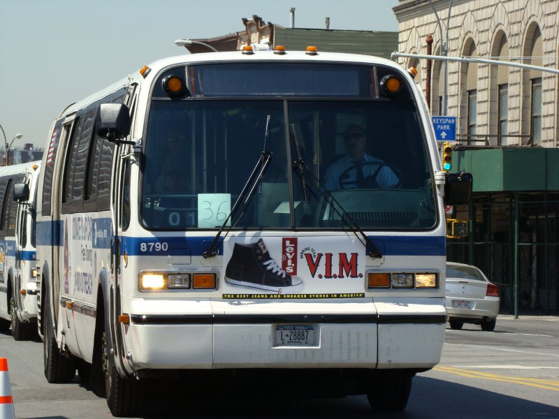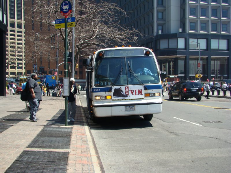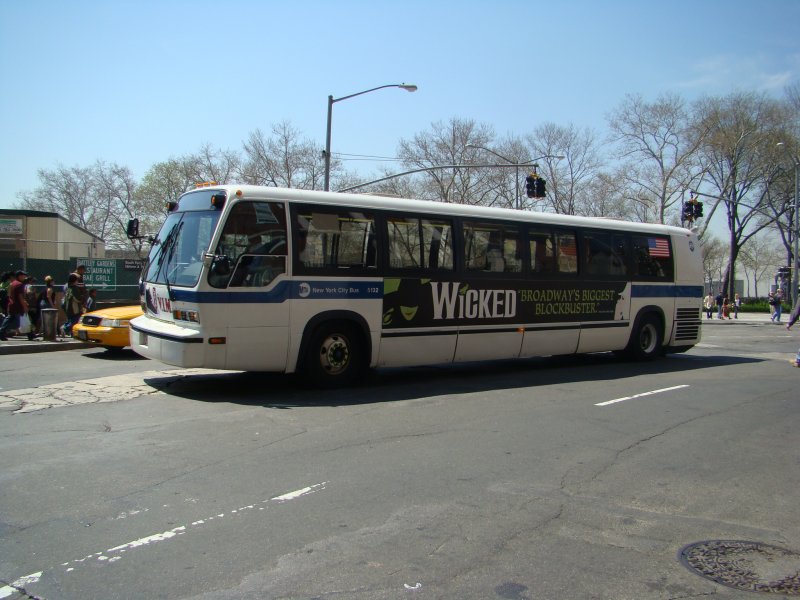 M6 zum South Central Park via Ground Zero. Hier ein GMC-RTS (Rapid Transit Series) an der South Ferry. Aufgenommen am 18.04.08