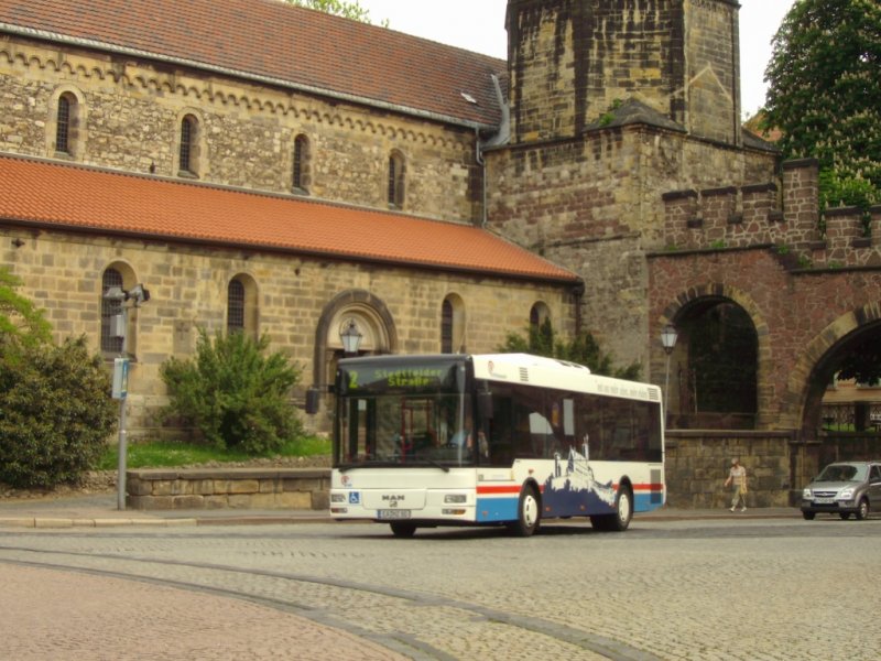 Stadtbus Eisenach: MAN NL der KVG Eisenach, eingesetzt im Stadtverkehr Eisenach (Mai 2008). Aufgenommen am Karlsplatz in der Innenstadt.