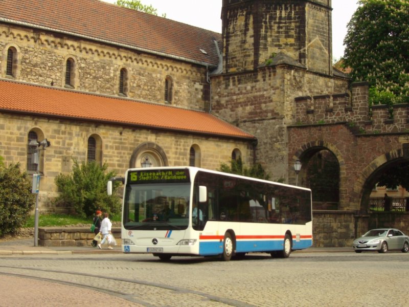 Stadtbus Eisenach: Mercedes-Benz Citaro der KVG Eisenach, eingesetzt im Stadtverkehr Eisenach (Mai 2008). Aufgenommen am Karlsplatz in der Innenstadt.