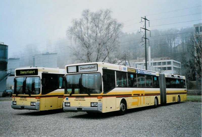 PostAuto Bern Die beiden Volvo/R&J Gelenkbusse (ex VB Biel Nr. 133 + 132) am 12. Januar 2008 Biel, Rattinbus (die Shuttlebusse für den Mysterypark in Interlaken warten auf den Weiterverkauf)