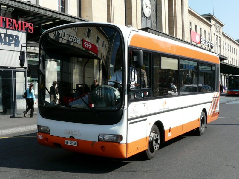 TG Genf - IVECO Kleinbus Nr.909 GE 96146 vor dem Bahnhof in Genf am 07.05.2008