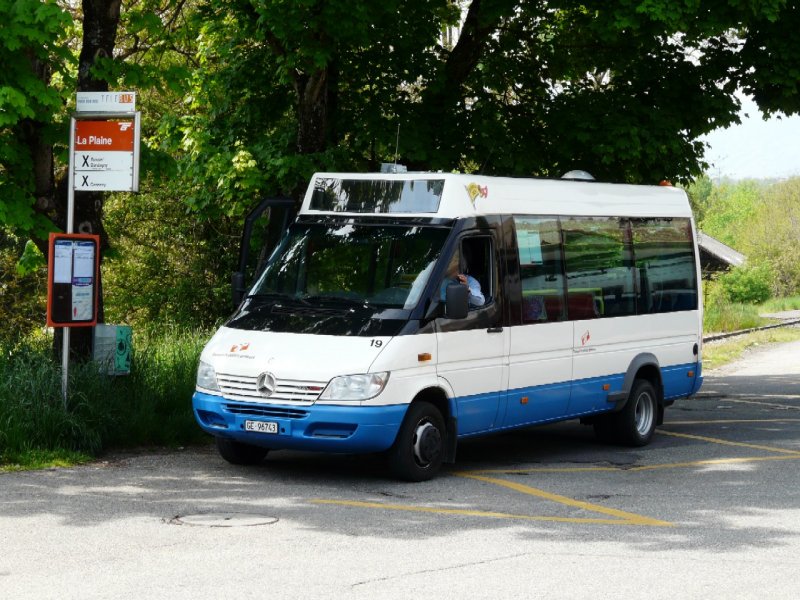 TG Genf - Mercedes 416 CDI Kleinbus Nr.19 GE 96743 bei der Haltestelle La Plaine am 07.05.2008