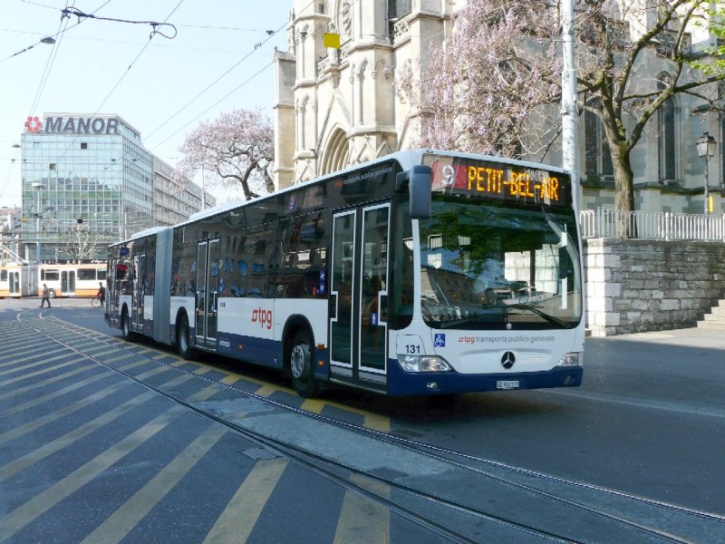 TG Genf - Mercedes Citaro Gelenkbus Nr.131 GE 960515 unterwegs auf der Linie 9 in Genf am 07.05.2008