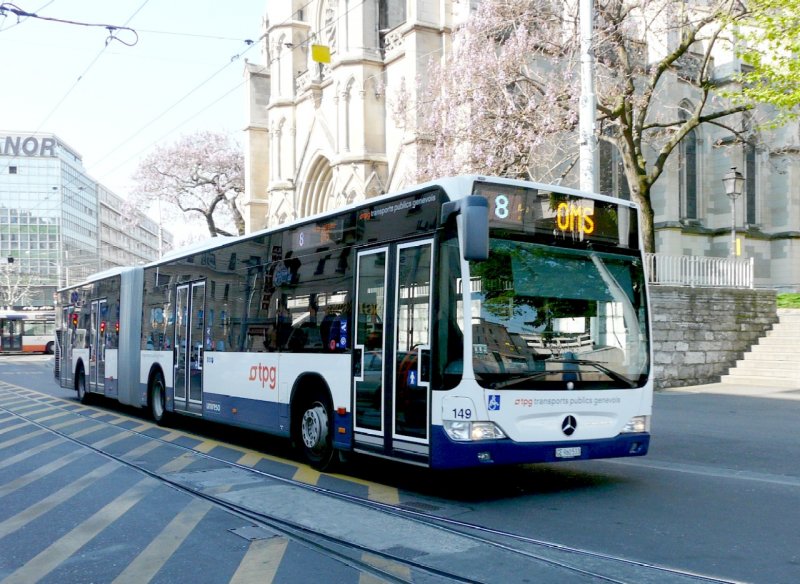 TG Genf - Mercedes Citaro Gelenkbus Nr.149 GE 960533 unterwegs auf der Linie 8 in Genf am 07.05.2008