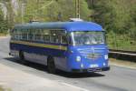 Ein schwedischer VOLVO-Reisebus mit Hänger auf Shopingtour an einem Supermarkt am 21.05.2008 in Bergen/Rügen.