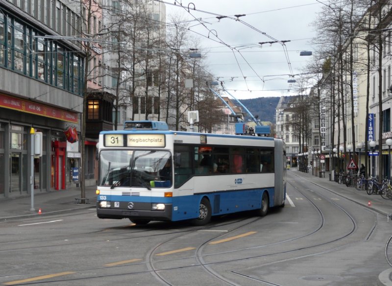 VBZ Zürich - Mercedes O 405 GTZ Trolleybus NR.133 unterwegs auf der Linie 31 am 19.04.2008