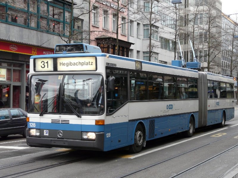 VBZ Zürich - Mercedes O 405 GTZ Trolleybus NR.128 unterwegs auf der Linie 31 am 19.04.2008