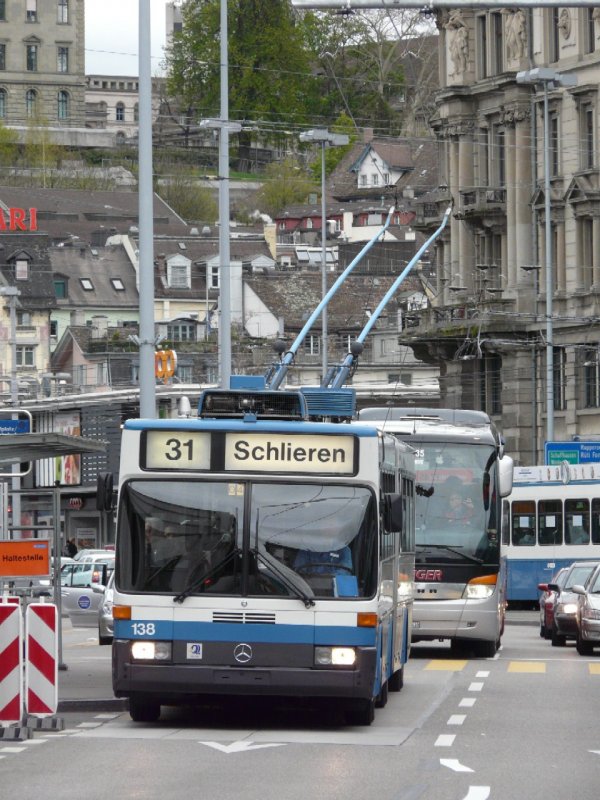VBZ Zürich - Mercedes O 405 GTZ Trolleybus NR.138 unterwegs auf der Linie 31 am 19.04.2008