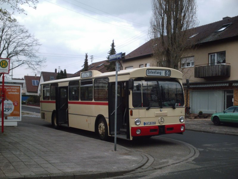 Sonderfahrzeug der VBK wagen KA-JS-318 war am 04.04.08 auf der linie 60 unterwegs.
