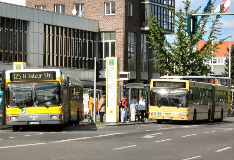 BVG-Linienverkehr mit MAN-Niederflurbussen an der Hst. U-Bhf. Alt-Tegel am 13.9.2008