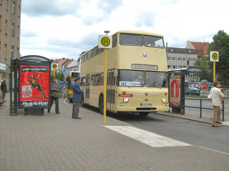 Hist. Doppeldeckerbus an der Hst. U-Bhf. Alt-Tegel, 14.9.2008
