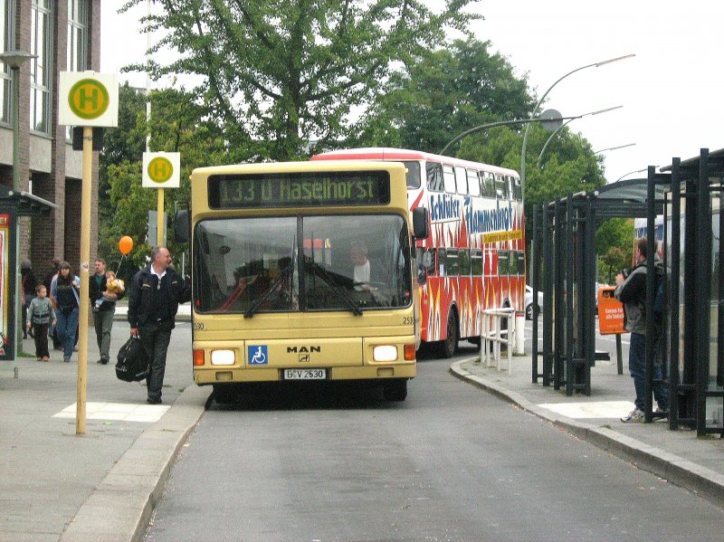 MAN-Stadtbus (vor hist. Doppeldeckerbus) an der Hst. U-Bhf. Alt-Tegel 14.9.2008