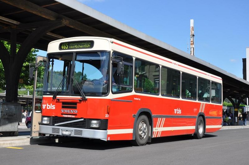 Busland AG, Burgdorf Nr. 23/BE 371'486 Volvo/Lauber (ex AAGK Koppigen Nr. 3) am 12. August 2009 im Bahnhof Burgdorf.