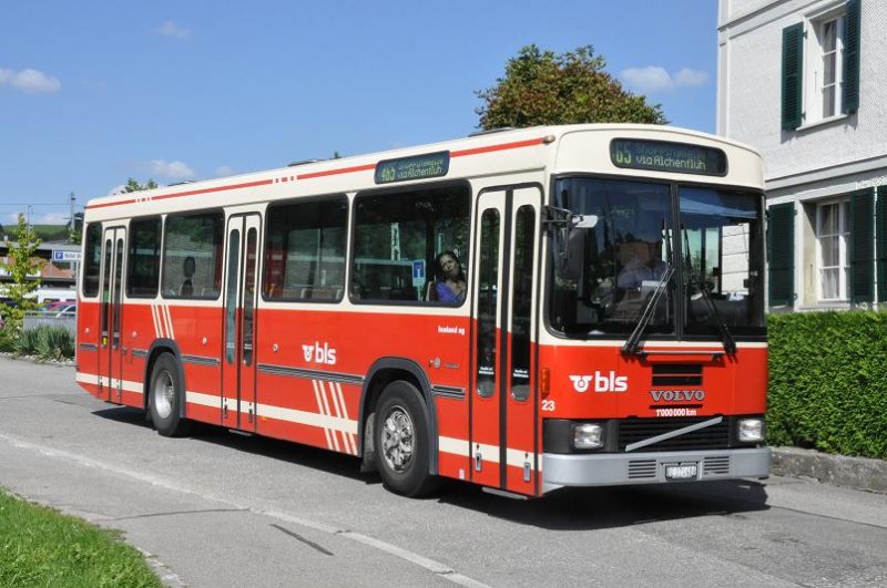 Busland AG, Burgdorf Nr. 23/BE 371'486 Volvo/Lauber (ex AAGK Koppigen Nr.3) am 12. August 2009 beim Bahnhof Burgdorf.