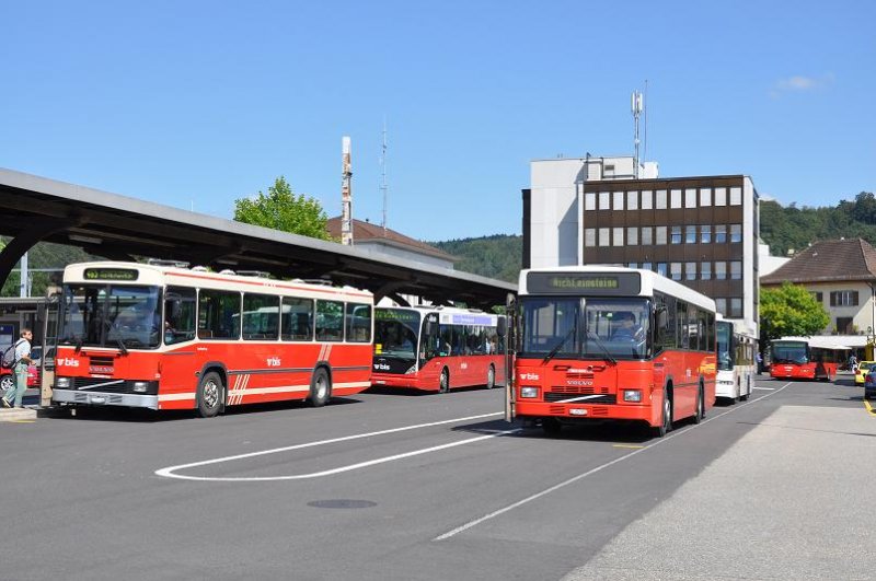 Busland AG, Burgdorf Nrn. 23, 5, 4, 31 und 29 am 12. August 2009 beim Bahnhof Burgdorf.