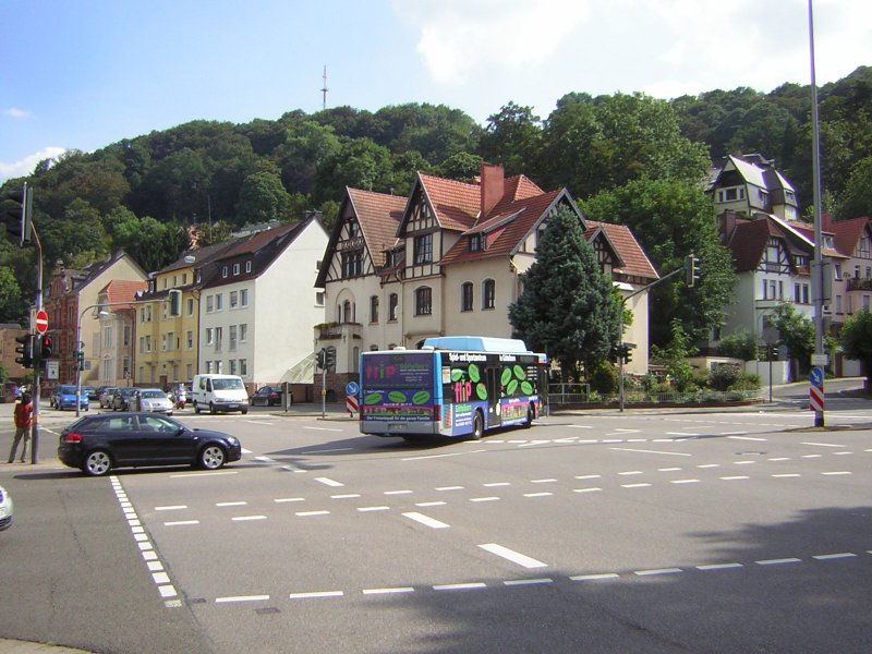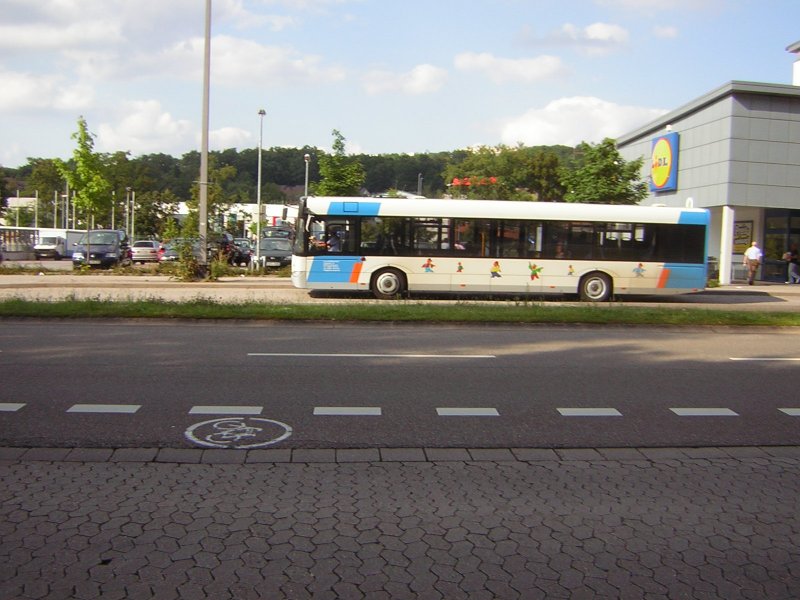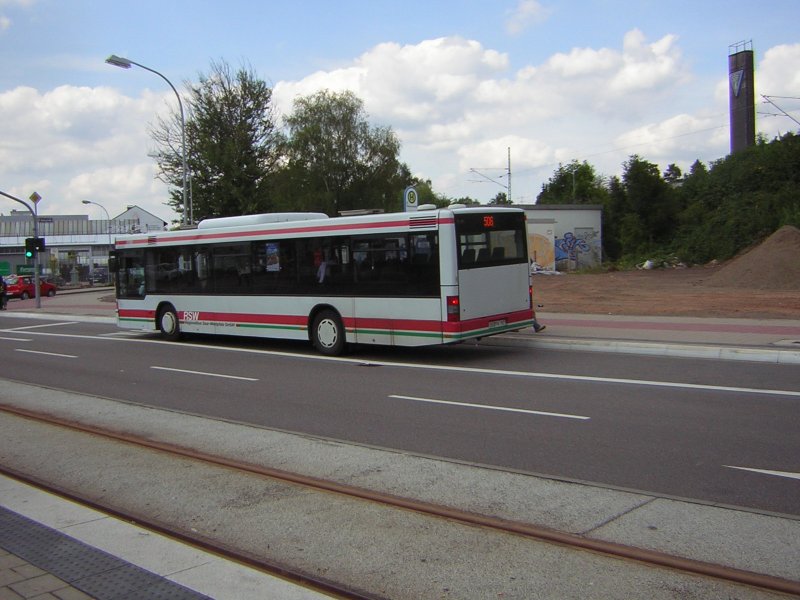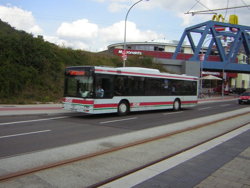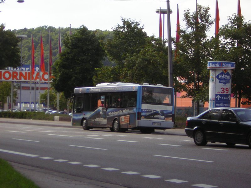 Ein MAN Bus auf dem Weg zur Haltestelle Römerkastell. Besonders toll finde ich die Saarbahn Werbung auf dem Bus.