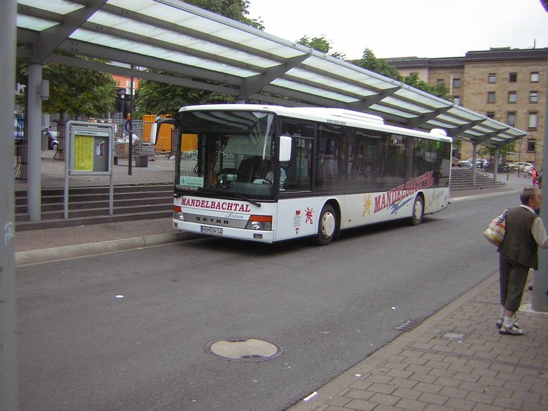 Ein Bus der Marke Setra wartet auf seine Abfahrt. Der Bus wird von dem Privaten-Unternehmer Mandelbachtal-Reisen gefahren.