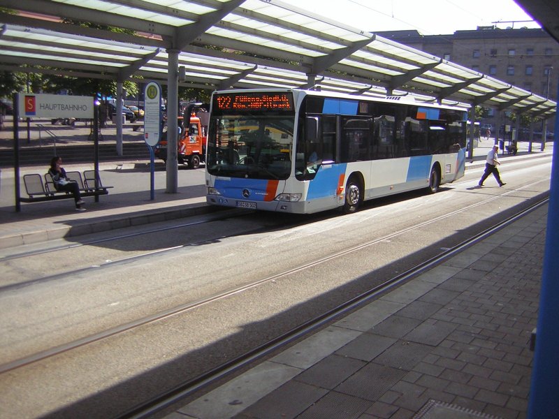 Setra S 415 UL der SBG mit Bemahlung der VVR (Verkehrsverein Rottweil), am Bahnhof am 14/08/09.