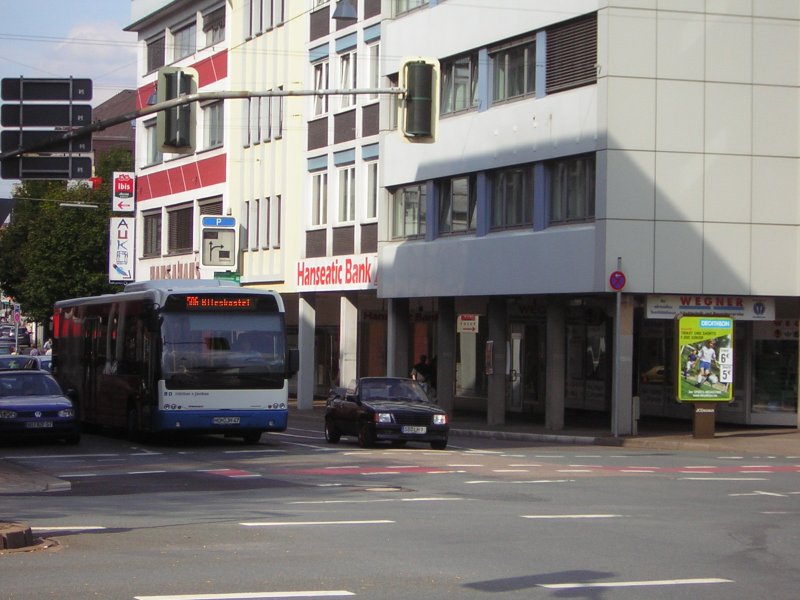 Ein VDL Berkhof Bus wartet an der Ampel in der Eisenbahnstraße auf seine weiterfahrt.