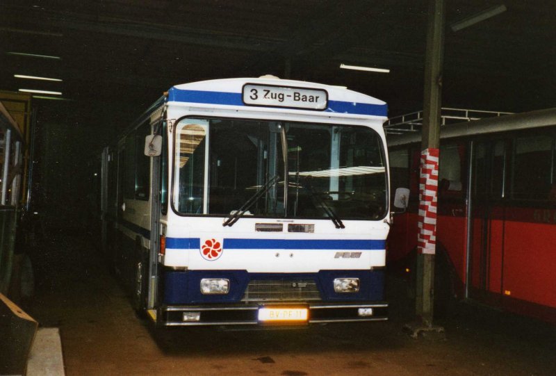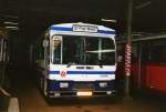 Rechts ein Mercedes O 305, Baujahr 1985, Wagennummer 6637.