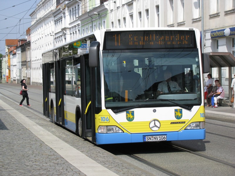MB ...... CITARO Stadtomnibus Nr. 106 der NVS an der Haltestelle Grunthalplatz in Schwerin 15.08.2009