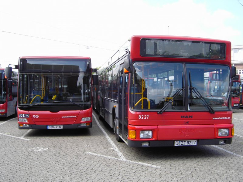 Links ein MAN NL 283, der Prototyp aus dem Jahr 2006 mit der Wagennummer 7500.