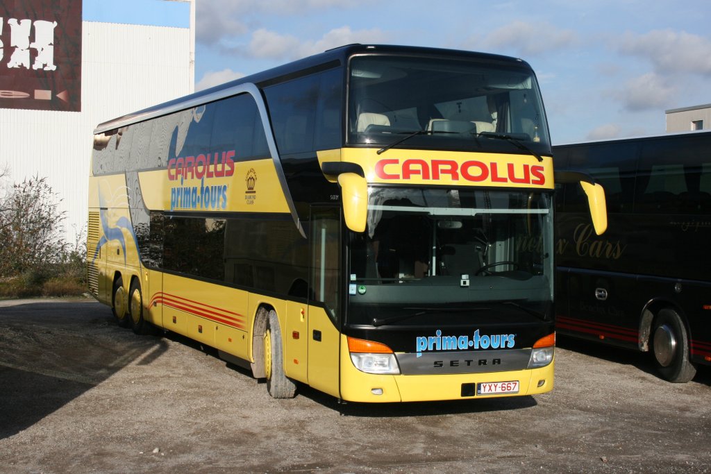 Carolus Prima Tours (YXY 667) Setra 431DT aus Belgien beim Weihnachtsmarkt in Essen.