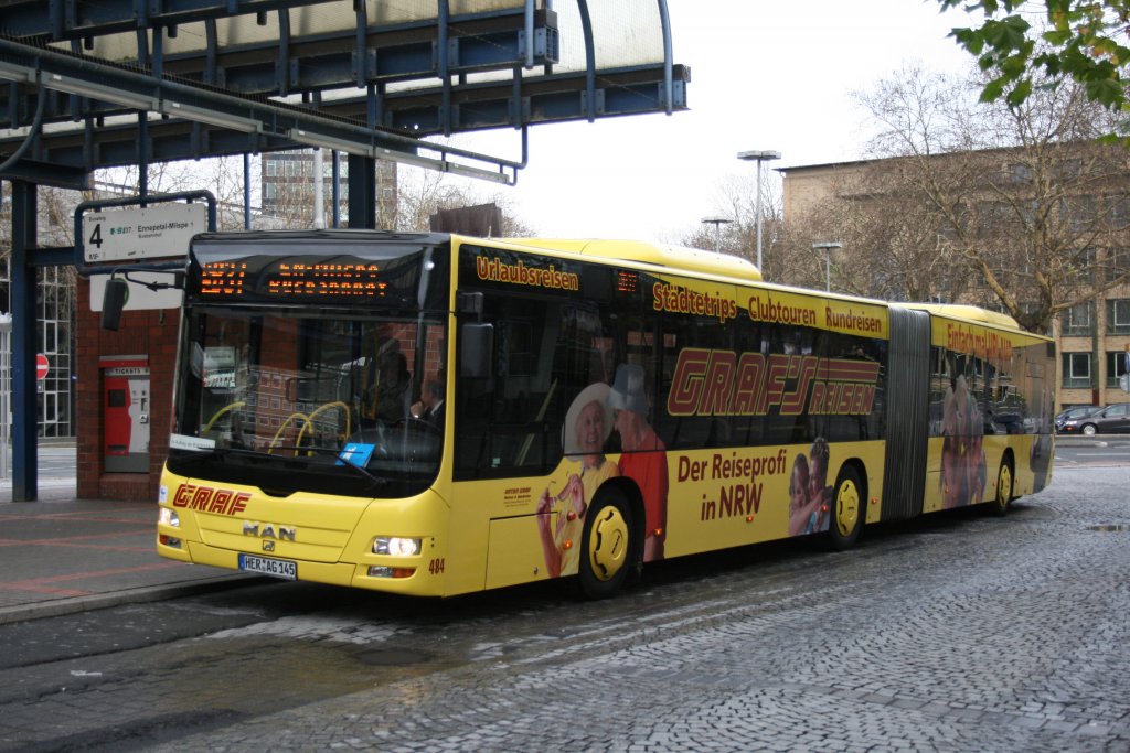 02.12.09,MAN der HCR Nr.90 in Wanne-Eickel mit Werbung:Busfahrer gesucht.