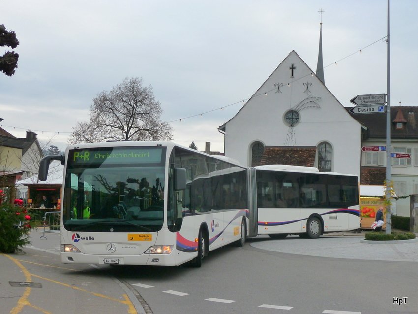 Postauto - Mercedes Citaro AG 6092 unterwegs als P&R am Weihnachtsmarkt in Bremgarten/AG am 05.12.2009
