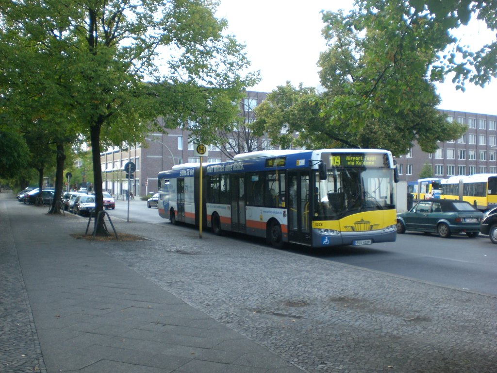 Solaris-Gelenkbus auf der Linie 109 nach Flughafen Tegel an der Haltestelle Hertzallee.