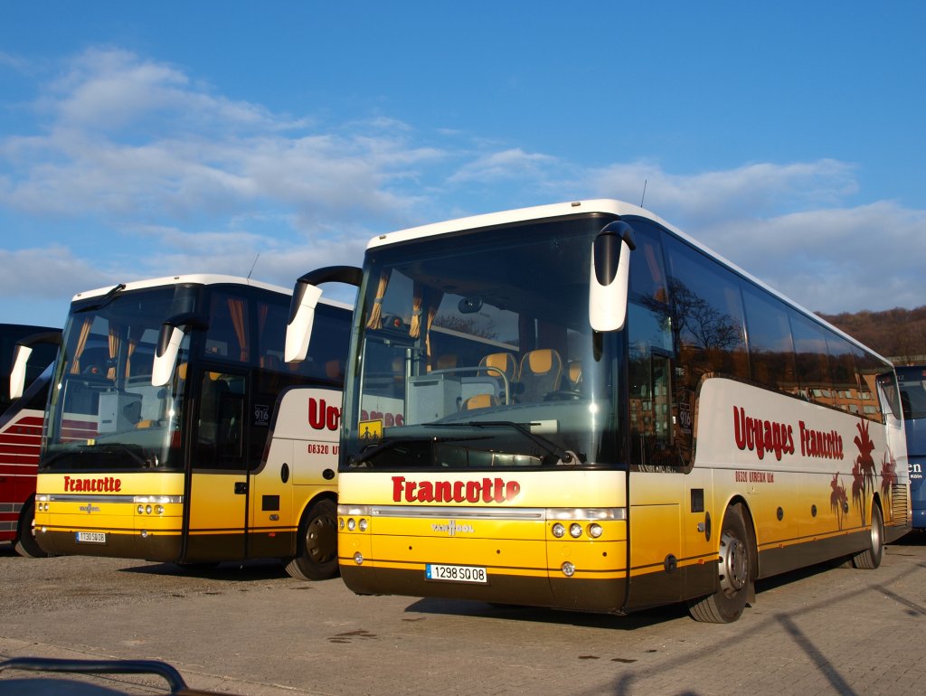 2 Französische Van Hool T916 auf dem Busparkplatz für die Besucher des Aachener Weihnachtsmarkts.