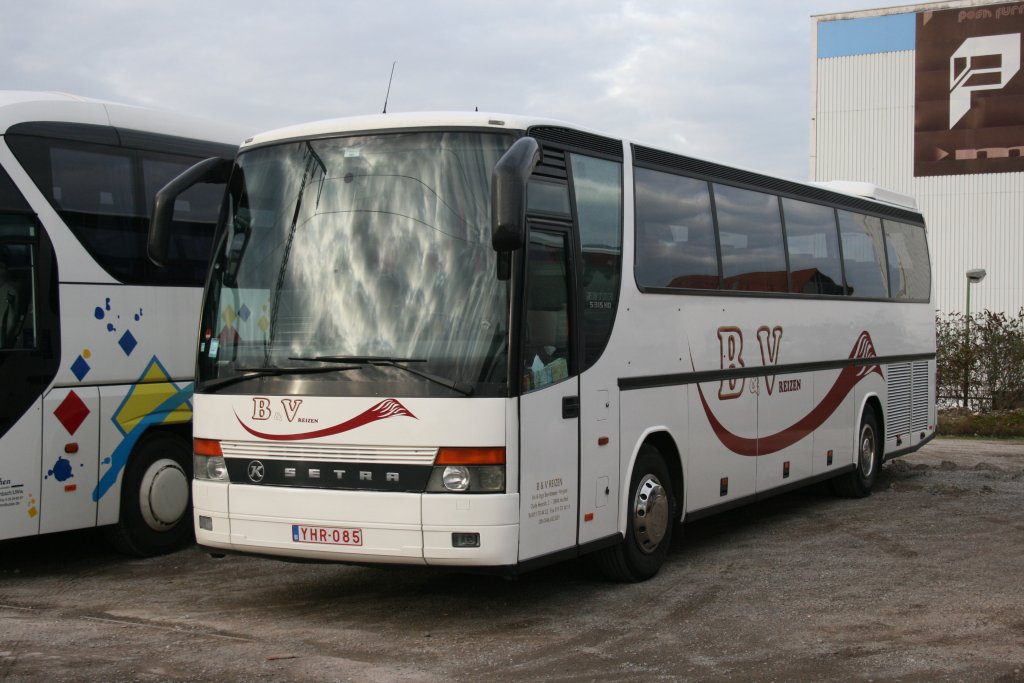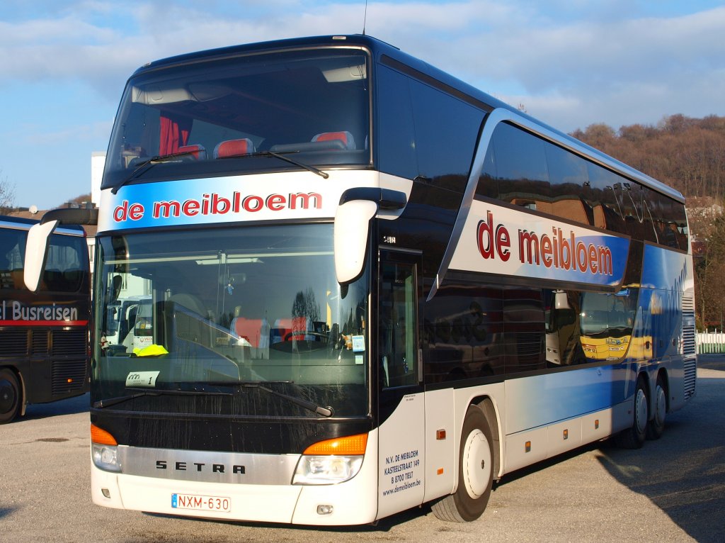 Belgischer Setra S431TD auf dem Busparkplatz für die Besucher des Aachener Weihnachtsmarkts.