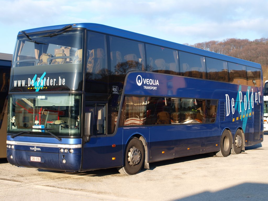 Belgischer Van Hool TD925 auf dem Busparkplatz für die Besucher des Aachener Weihnachtsmarkts.