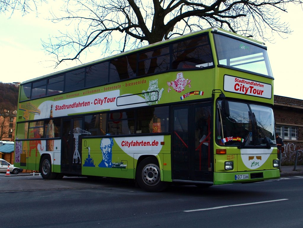 Mit diesem City Tour Bus fahren die Besucher des Aachener Weihnachtsmarktes vom Busparkplatz Bendplatz in die Aachener Innenstadt.