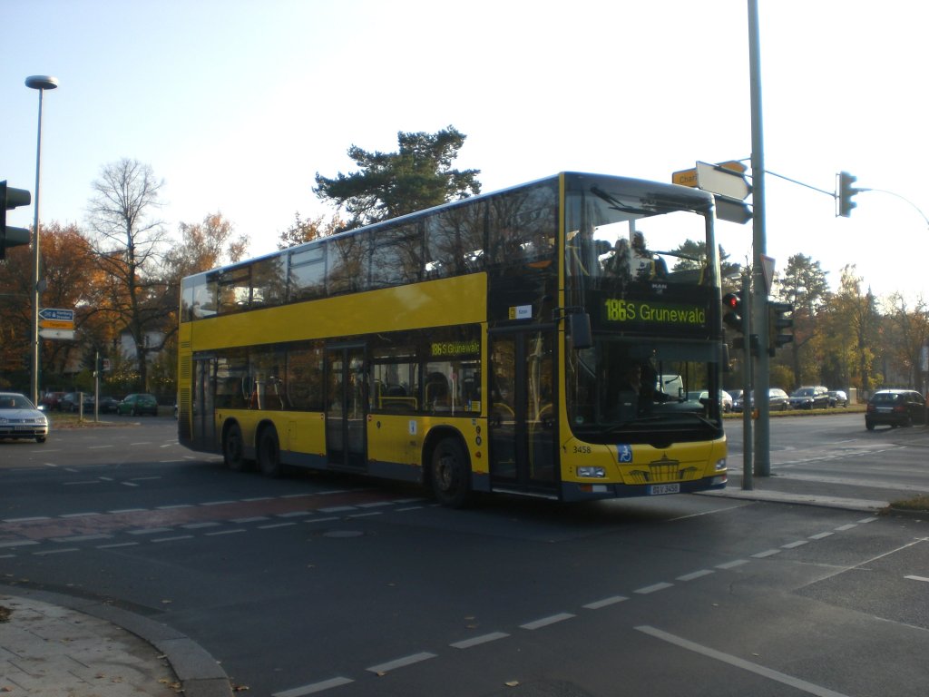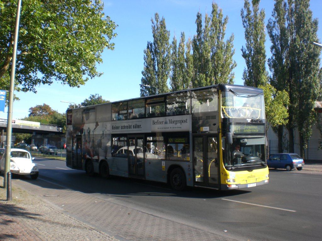 MAN-Doppeldecker auf der Linie 104 nach Neu-Westend Brixplatz am U-Bahnhof Blissestraße.