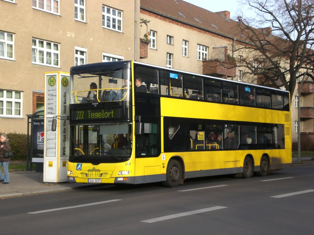 MAN Lion's City DD (Doppelstock) auf der Linie 222 nach Tegelort an der Haltestelle Eschbachstraße/S-Bahnhof Tegel.